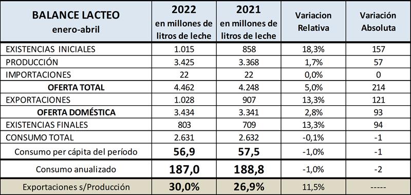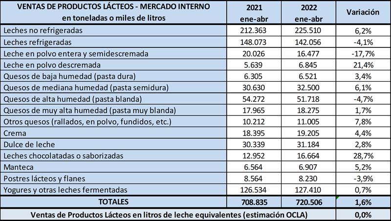 Ventas de Productos Lácteos en el Mercado Interno – abril 2022 28/6/2022