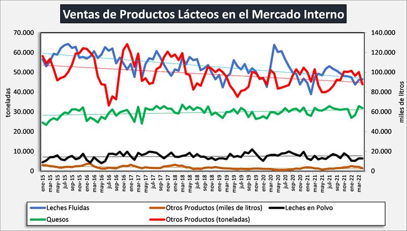 A pesar de los comentarios, respecto al cuidado que hay que tener al analizar las bajas y subas de ventas de los diferentes productos en el período actual, lo que es contundente es que las ventas y por ende el consumo, presentan en los últimos años una tendencia a la baja en general y una primarización del mismo (productos más básicos: leches fluidas no refrigeradas, quesos al peso de segundas y terceras marcas y yogures bebibles de litro) en detrimento de aquellos productos de mayor valor agregado y por ende económico.