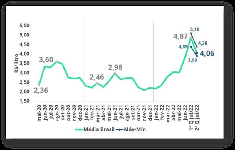 Los datos de MilkPoint Mercado apuntan a una caída de 16,63% en la leche spot en la segunda quincena de julio, en comparación con el período anterior. El precio cerró en R$ 4,06/litro en el promedio brasileño (*) – disminución de R$ 0,81 frente a la 1ª quincena de julio, que cerró en R$ 4,87.