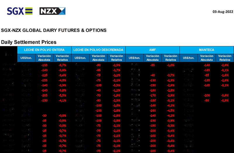Importante baja experimentaron ayer las principales commodities lácteas en el mercado de futuros de Nueva Zelanda, situación que consolida las caídas de los precios en las últimas subastas del Global Dairy Trade.