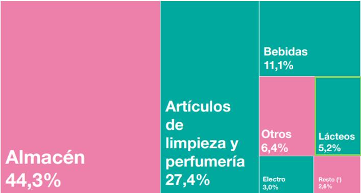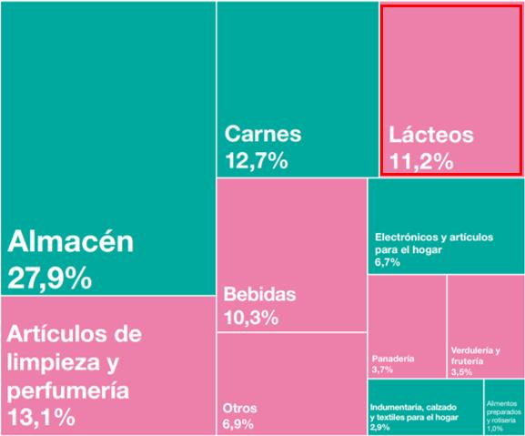 La participación de los lácteos en las ventas totales de los supermercados fue del 11,2% (11,0% en mayo de 2021 y 12,1% en mayo de 2020).