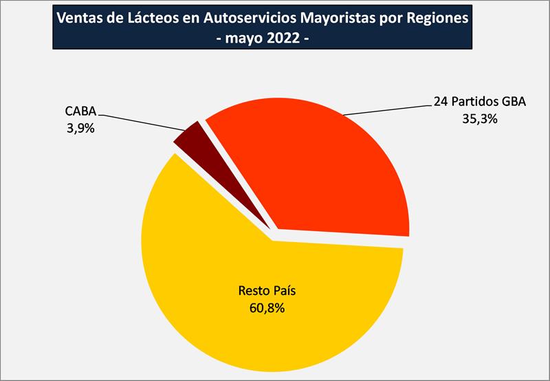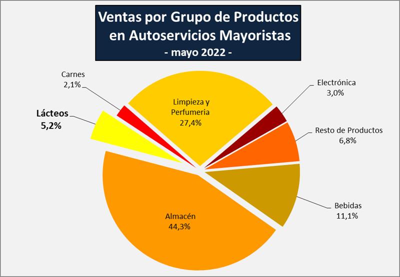 Las ventas de lácteos representaron el 5,2% de las ventas totales de los autoservicios mayoristas durante el mes de mayo de 2022.