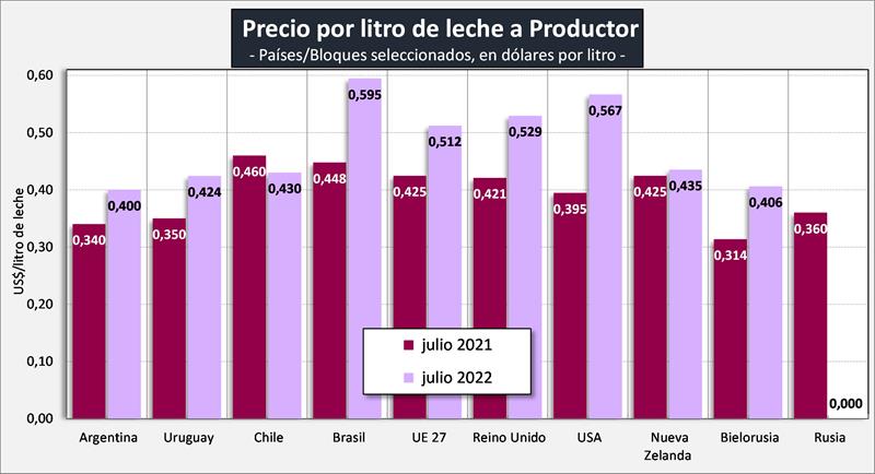 Fuentes: DNL-MAGyP, INALE, ODEPA, CEPEA/ESALQ USP, MilkPoint, EMMO, AHDB, USDA y CLAL, respectivamente.