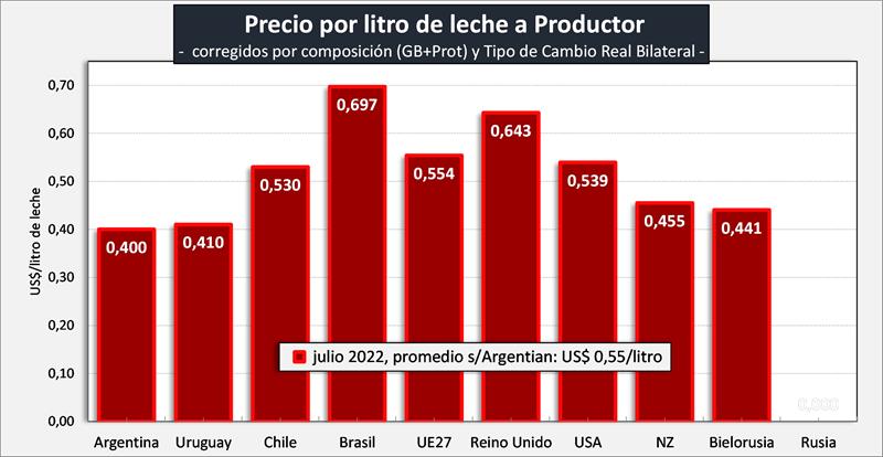 Precio de la Leche al Productor en dólares por litro, corregidos por Sólidos Útiles (Grasa Butirosa + Proteína):