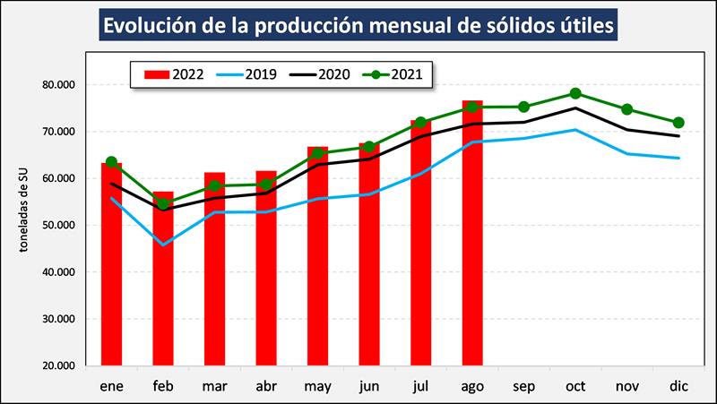 Evolución de la producción al mes de agosto de 2022 23/9/2022