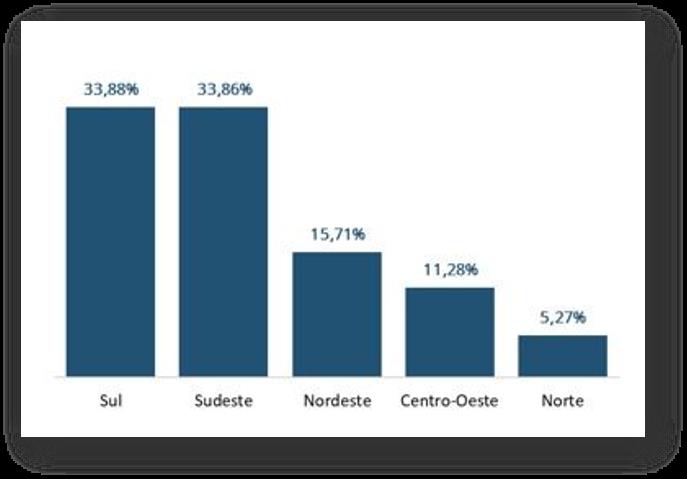 Entre las regiones brasileñas, por primera vez en la historia, la región Sur superó a la Sudeste en volumen producido, representando la región el 33,88% de la producción total, mientras que la Sudeste, el 33,86%. Este escenario se formó debido a la menor caída de la producción en el sur del país. Mientras la región retrocedió el -0,8%, el Sudeste presentó variación negativa del 1,8%. De esta forma, ambas regiones presentaron una producción similar, ocupando el primer y segundo lugar del total del país.