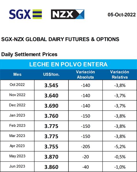 Mercado de Futuros NZX – Leche en Polvo Entera 5/10/2022