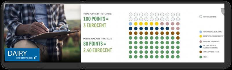 A partir de 2023, la cooperativa redistribuirá 2,40 centavos de euro por kg. de leche a los productores participantes en función de su recuento de puntos, que se otorgarán a través de 19 items, y las medidas de gran impacto obtendrán más puntos. También se reconocerán las actividades pasadas.