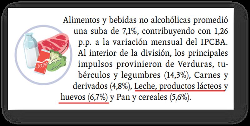 Cabe mencionar que para el rubro “Leche, productos lácteos y huevos” de GBA, el INDEC mide una variación del 7,4% respecto al mes anterior, y + 85,5% en la variación interanual (este índice anual varía por región entre 79,9% y 87,0%).