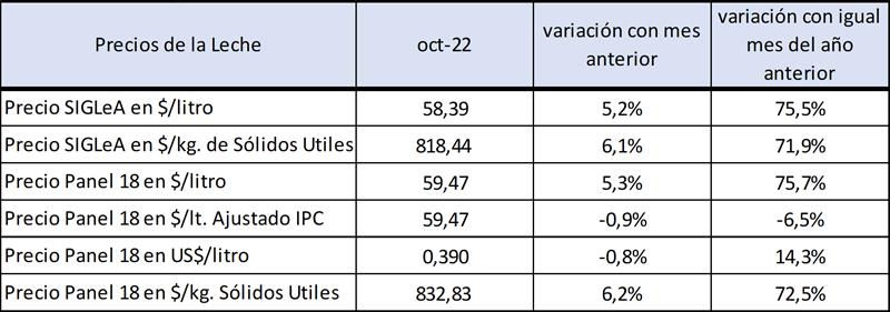 Precios de la leche al productor – octubre de 2022 18/11/2022