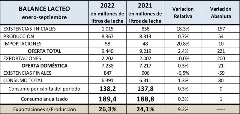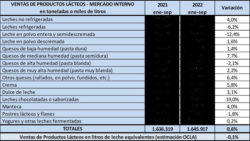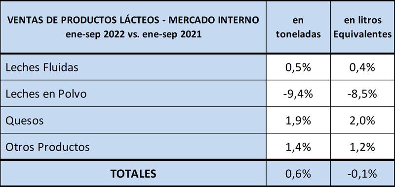 Ventas de Productos Lácteos en el Mercado Interno – septiembre 2022 23/11/2022