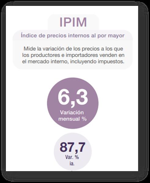 El nivel general del índice de precios internos al por mayor (IPIM) registró un aumento de 6,3% en noviembre de 2022 respecto del mes anterior, 83,5% para los diez meses transcurridos de 2022 y acumula una suba del 87,7% en los últimos 12 meses.