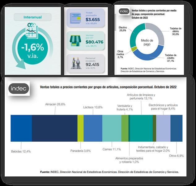 Datos relevantes de las ventas de supermercados a octubre de 2022: