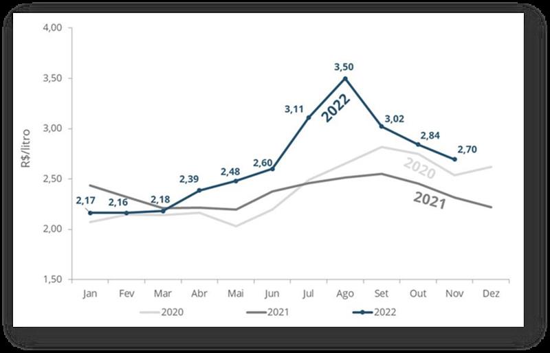 Además de los desafíos inherentes al sector lácteo, 2022 también tuvo muchas incertidumbres externas, como: la guerra en Ucrania, la recesión económica mundial, la volatilidad del dólar y la carrera presidencial en Brasil.