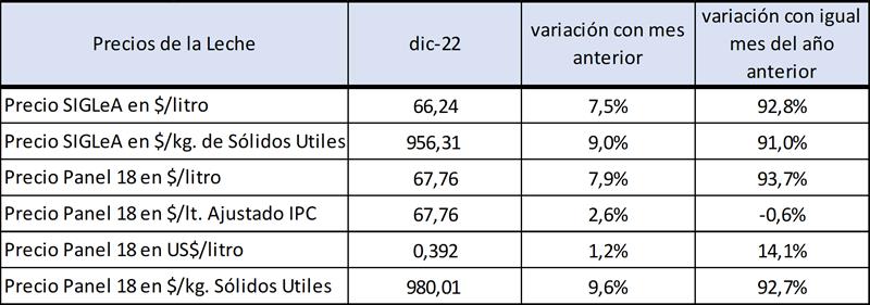 Precios de la leche al productor – diciembre de 2022 13/1/2023