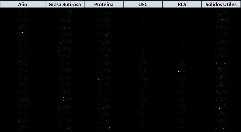 Promedios anuales ponderados de la Calidad de Leche