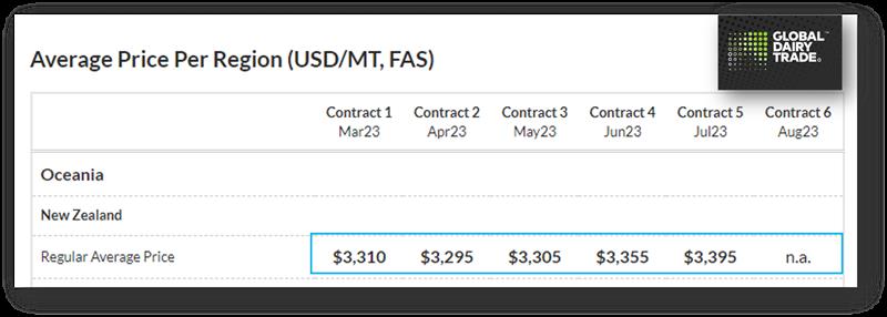 Precios de la Leche en Polvo Entera en el Mercado de Futuros NZX de ayer: