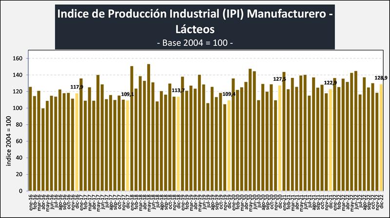 Índice de Producción Industrial Manufacturero – LÁCTEOS - diciembre de 2022
