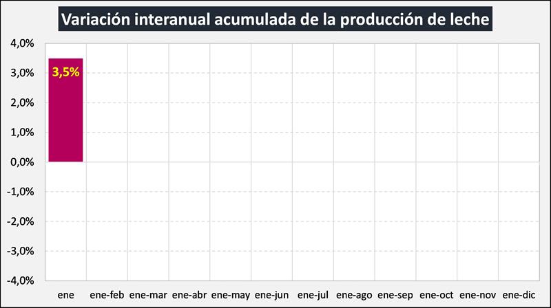 En el mes de enero del 2023 la producción fue de 955 millones de litros de leche, esto implicó un valor 7,3% por debajo del mes anterior y un 3,5% más que igual mes del año anterior.