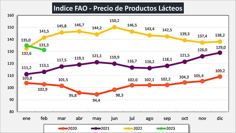 Indice de Precios de los Lácteos de FAO 3/3/2023
