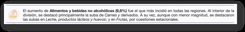Si miramos, también en CABA el índice que incluye a los lácteos juntos con huevos (huevos aumentó el 10,8%), podemos decir que lácteos en particular es una de las divisiones que menos subió en la categoría de Alimentos y Bebidas.