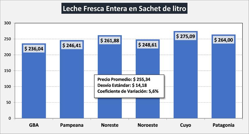 Se observa también en el análisis de los datos y con la información de Consultoras de Mercado, que existe una gran dispersión de precios en función al canal comercial y a la región. El gráfico siguiente ejemplifica la diferencia regional.