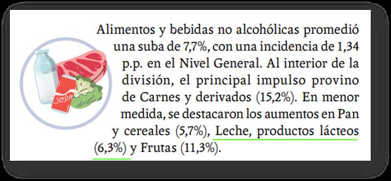 Como puede verse en los comentarios a los precios de los alimentos en CABA, se menciona a los productos lácteos dentro de los principales rubros impulsores de la categoría.
