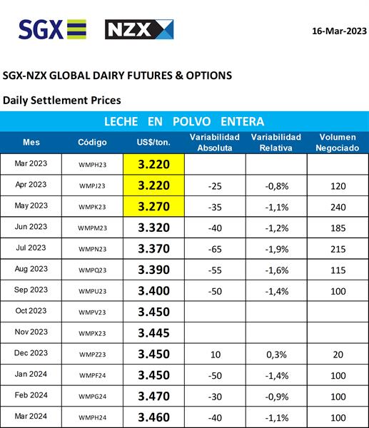 Mercado de Futuros NZX – Leche en Polvo Entera