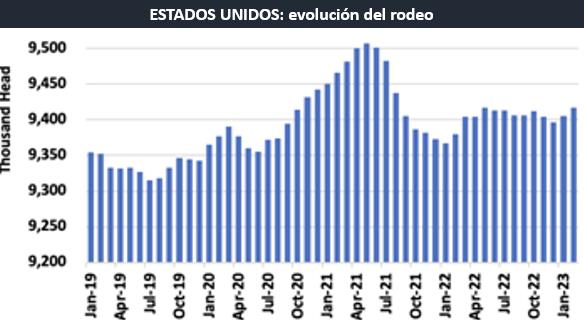 El crecimiento de la producción se concentró en el centro del país, mientras que la producción en la mayoría de los estados occidentales tuvo problemas. A pesar de que los márgenes son acotados y los números de faena siguen siendo elevados, la expansión del rodeo lechero contribuyó al aumento. Con 9,417 millones de vacas, el rebaño nacional creció en 12.000 cabezas en comparación con enero y fue 37.000 cabezas más grande que en el mismo período del año pasado.