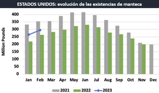 La actividad en el mercado del suero ha sido más moderada. Los participantes del mercado informan que los precios de los productos con mayor contenido de proteína, como los concentrados de proteína de suero (WPC), están cayendo, lo que empuja a los fabricantes de suero a favorecer la producción de suero seco. China siguió siendo un destino importante para los productos de suero de EE. UU. y otros proveedores. Entre enero y febrero, China importó un total acumulado de 250 millones de libras de productos de suero (113.400 toneladas). Esto representa un aumento del 61,4 % en comparación con el año pasado, pero está un 10 % por debajo de la cifra de 2021. Estados Unidos fue el principal proveedor, con una participación del 49,5%