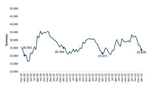 En esta primera quincena, el volumen negociado disminuyó con relación a la quincena anterior. En total se negociaron 23.828 toneladas de productos lácteos, volumen un 11% inferior al negociado en la última subasta, que es el volumen más bajo registrado desde agosto de 2022.