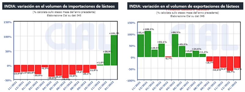 Las tensiones en el mercado interno han abierto las puertas a los mercados internacionales y las importaciones de lácteos del país ya registran aumentos significativos. El gobierno indio está considerando eliminar los impuestos a la importación de productos lácteos para aliviar las tensiones del mercado.