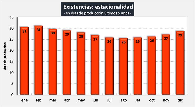 Estacionalidad de las existencias medidas en días de producción: