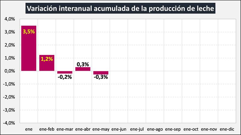 Normalmente la producción en el mes de mayo crece un 7% respecto a abril, este año ha subido sólo la mitad (+3,5%), seguramente por los efectos de la seca generalizada y prolongada que sufrieron en diferente medida todas las regiones productivas y que redujeron la disponibilidad de pasturas, verdeos y reservas forrajeras.