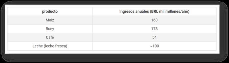 Tabla 1 . Tamaño aproximado de los mercados agrícolas en Brasil (en R$ mil millones de ingresos anuales de la producción primaria)