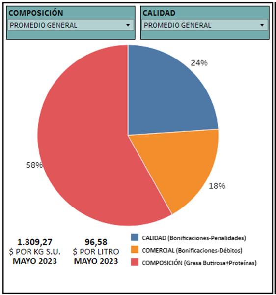 Los precios publicados surgen del promedio del precio básico + bonificaciones de calidad por estrato + el promedio de bonificaciones comerciales ponderados por litro. Los parámetros higiénicos y sanitarios son fijos mes a mes y los parámetros composicionales para definir cada rango variarán por mes en función a la estructura composicional (grasa butirosa + proteína).