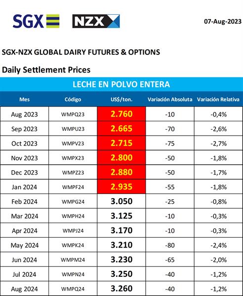 Mercado de Futuros NZX – Leche en Polvo Entera 7/8/2023