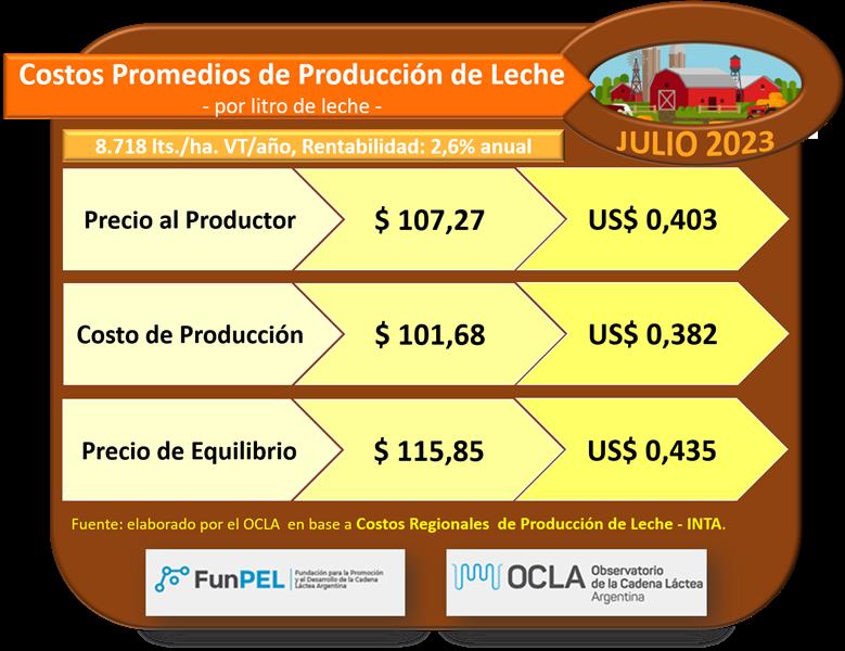 Costos Regionales de Producción de Leche, valores actualizados a JULIO del 2023 28/8/2023