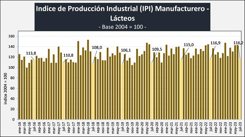 Índice de Producción Industrial Manufacturero – LÁCTEOS - julio de 2023
