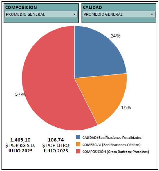 Los precios publicados surgen del promedio del precio básico + bonificaciones de calidad por estrato + el promedio de bonificaciones comerciales ponderados por litro. Los parámetros higiénicos y sanitarios son fijos mes a mes y los parámetros composicionales para definir cada rango variarán por mes en función a la estructura composicional (grasa butirosa + proteína).