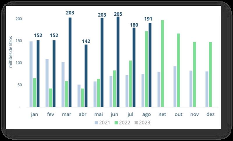 Los compradores brasileños han visto cómo los precios de los productos importados se vuelven mucho más atractivos desde el segundo semestre del año pasado, lo que ha estimulado las compras de Brasil desde entonces. De enero a agosto, importamos alrededor de 1.400 millones de litros de equivalente de leche (alrededor del 8,3% de nuestra disponibilidad total), como podemos ver en el gráfico siguiente.