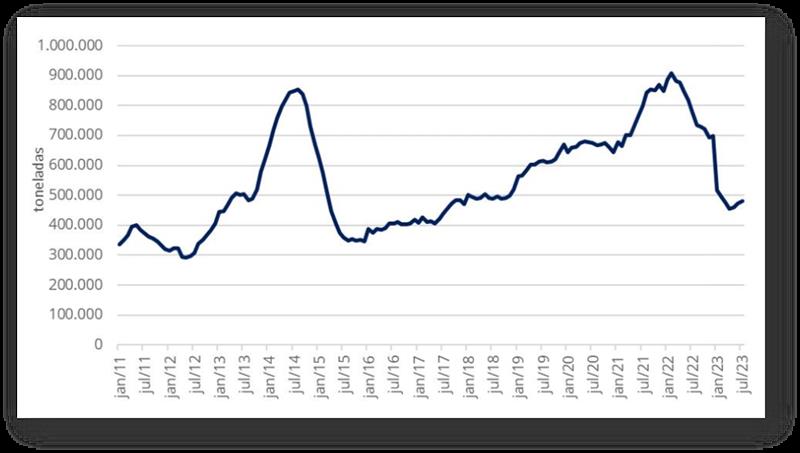 Por lo tanto, con precios menos competitivos y otros mercados ganando mayor relevancia en las compras internacionales, deberíamos ver caer el volumen de las importaciones brasileñas en lo que queda de 2023 y principios de 2024.