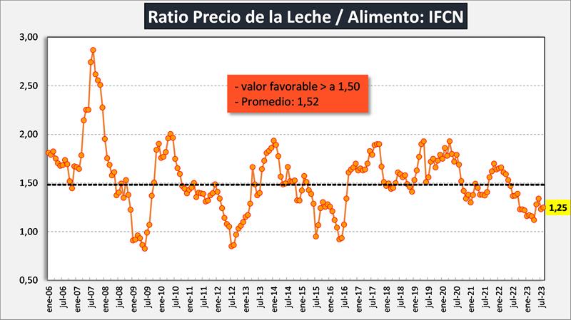 Ratio suministrado por MilkPoint: Precio de la Leche al Productor / Gasto de Alimentación.