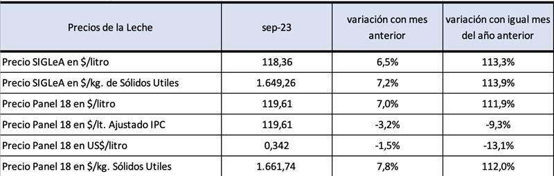 Precios de la leche al productor: septiembre de 2023 20/10/2023