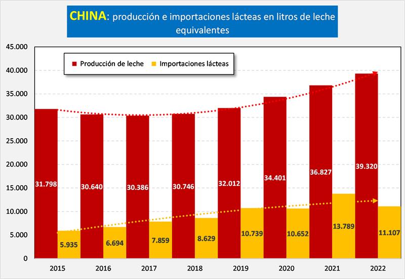 De igual forma, China es por lejos el principal importador de manteca, butteroil, leche en polvo entera y descremada, como así también de suero de queso con destino a consumo animal. Aún no tiene una importación tan alta de quesos debido a que sus hábitos de consumo, aunque se están occidentalizando día a día, todavía no se da un gran consumo, pero viene en franco crecimiento.