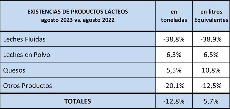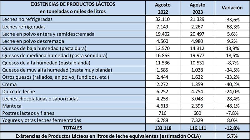 Existencias de Productos Lácteos – agosto 2023 26/10/2023