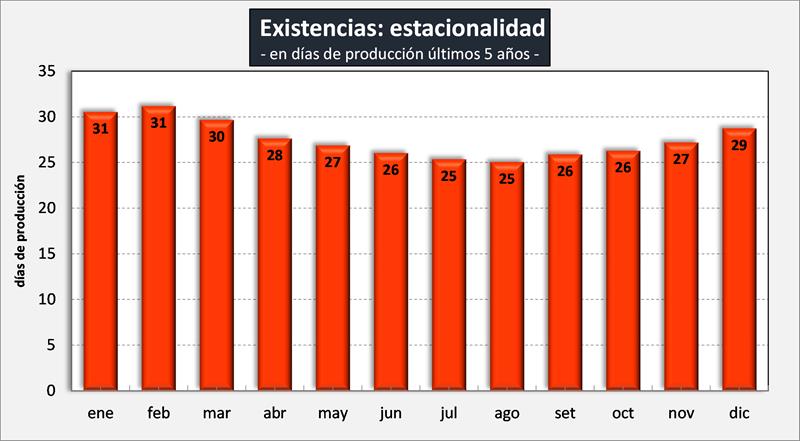 Estacionalidad de las existencias de productos lácteos en días de producción de leche, en los últimos 5 años: