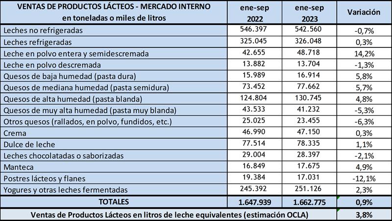 Ventas de Productos Lácteos en el Mercado Interno – septiembre 2023 29/11/2023