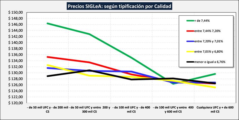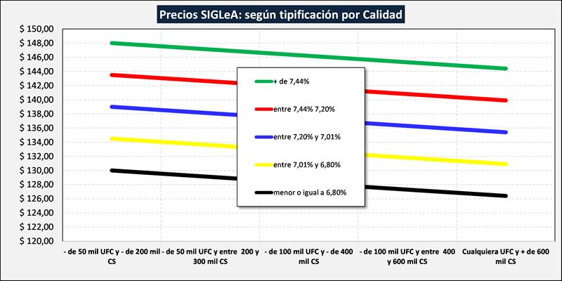En el cuadro de tipificación, la leche comercializada se divide en 25 estratos según composición y calidad higiénico-sanitaria y, dentro de cada estrato, se muestra un promedio ponderado del precio del total de esos litros y además un promedio ponderado del 20% superior e inferior de los precios.