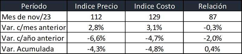 Relación Indice Precio e Indice Costo de Producción: noviembre 2023 21/12/2023